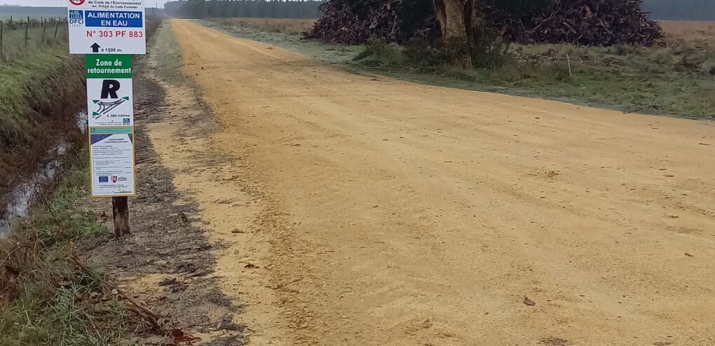 Ce sont donc près de 1 300 mètres qui ont fait l’objet d’une mise aux normes et d’un empierrement, comprenant l’assainissement, les ouvrages de franchissement, la signalisation et la réalisation d’un forage DFCI, ce dernier sous couvert du service pour la protection des eaux et des milieux aquatiques de la DDTM des Landes.